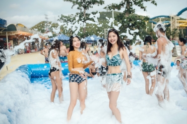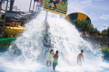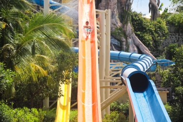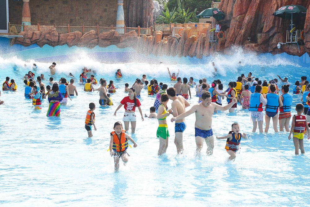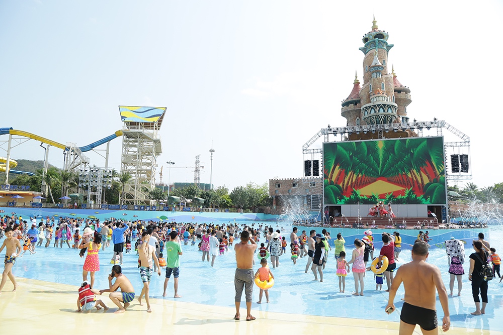 樂園目前配備12套大型游樂設(shè)施,近百條戲水滑道。其中包括垂直距離高達(dá)28米、下滑角度70°的國內(nèi)頂尖心跳滑道——尖峰時速;長達(dá)1350米、詮釋雨林故事的休閑漂流項目——雨林漂流;面積16000平方米、海嘯浪可高達(dá)3米的造浪池項目——颶風(fēng)海嘯及歡樂海岸;被稱之為“亞洲奇跡“的長280米的超長水上過山車——水上飛龍。