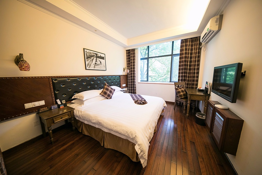 酒店前身為阿爾巴尼亞專家樓,外觀保持了東歐建筑風(fēng)貌,內(nèi)部設(shè)計(jì)則融入本地田園風(fēng)情,形成中歐復(fù)合的韻味。酒店一共有85間客房,可容納200余人入住、用餐及聚會(huì)。