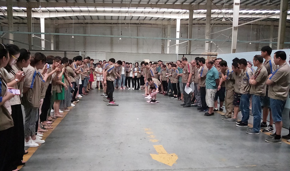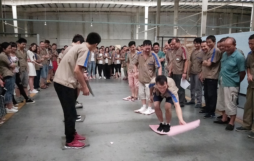 隨著一聲“比賽開始”的口令,大家熱情高漲,隊員們齊心協(xié)力,奮力拼搏,有些隊剛開始有點緊張,所走路線成彎曲狀,后來,在大家從旁提醒,順利到達終點。有些隊吸取經(jīng)驗,通過簡單的交流和溝通戰(zhàn)略技巧,比較順利。相比而言,后面的組明顯比前面的組速度快。在整個比賽過程中,里料車間團隊協(xié)作的能力和靈活的戰(zhàn)術(shù)配合比較好,本著“友誼第一、比賽第二”的精神,經(jīng)過激烈角逐,里料車間以2分25秒完成了60米“搭橋過河”獲比賽第一名,包裝車間獲得第二名,技術(shù)部獲得第三名。