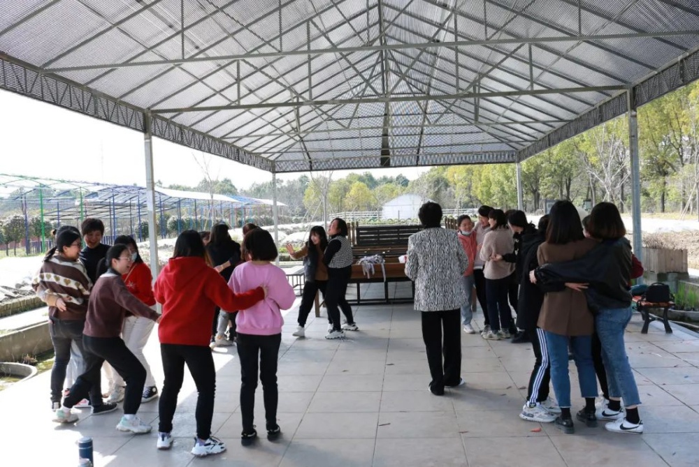 最后玩起了一種令人難忘的游戲,大家圍成一圈慢跑后,當(dāng)聽到報數(shù)人喊數(shù)字口令后,隊友們立即按該數(shù)字抱成一團(tuán)。結(jié)果很多人手忙腳亂,有的找到了伙伴,也有的不是三個人抱在了一起,就是沒有朋友的,哈哈!