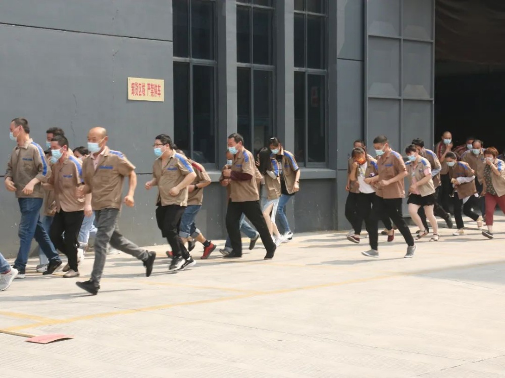 經(jīng)過周密安排,上午9時(shí),一陣急促的火警警報(bào)聲拉開了“消防疏散演練”活動(dòng)的帷幕,聽到警報(bào)聲,各車間主任立即到達(dá)指定崗位,指導(dǎo)員工快速疏散,員工們彎著腰、貓著步,捂住口鼻,沿著指定安全出口快速前進(jìn),有序安全撤離到廠區(qū)內(nèi)的緊急集合點(diǎn)。