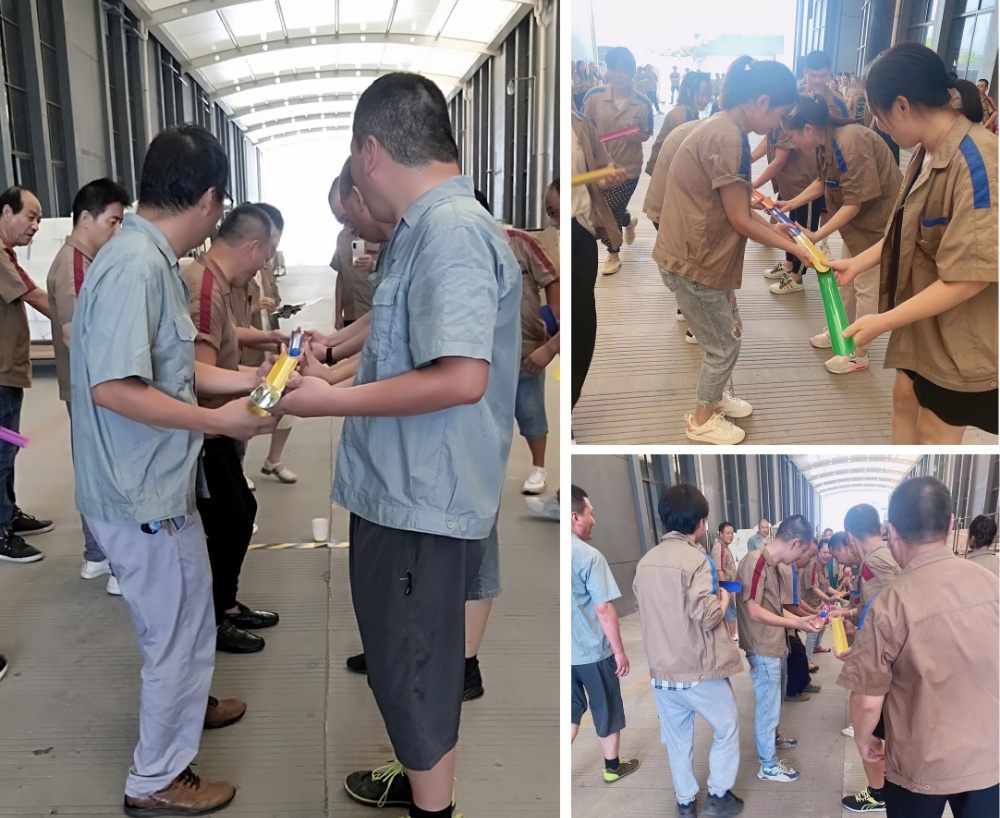 這是一場爭分奪秒、講究合作的極限突破活動,要求所有人必須以最快的速度搭建一個高效的梯隊,去完成一項“偉大”的任務,考驗的不僅是耐力,還有團隊成員之間的互助、支持與合作。隨著“比賽開始”的口令,大家熱情高漲,隊員們齊心協(xié)力,默契配合,小球在圓管中飛快地轉動著身子,員工們縱情地投入著、激情地呼喊著。通過激烈角逐,成品車間代表隊以較好的協(xié)作能力和靈活的團隊戰(zhàn)術獲得第一名。
