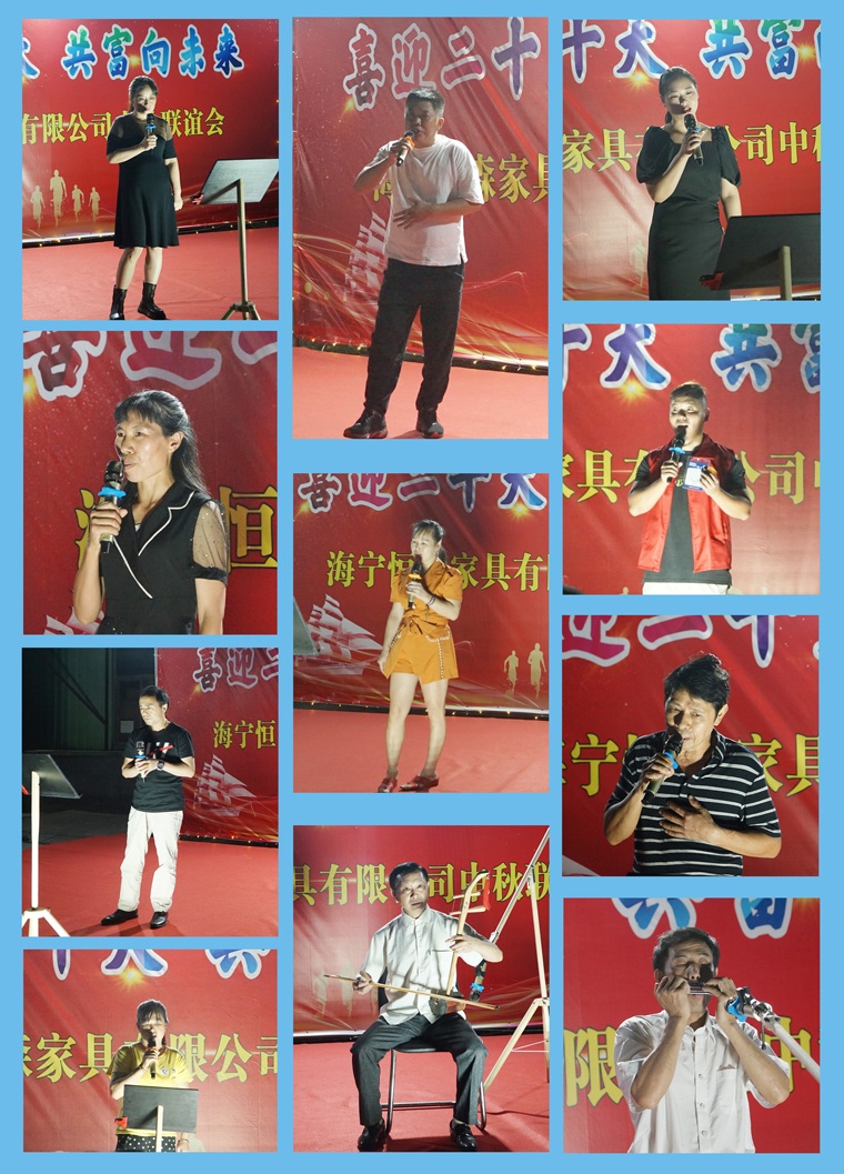 9月7日晚,一場(chǎng)別開(kāi)生面的“喜迎二十大·共富向未來(lái)——海寧恒森家具有限公司中秋聯(lián)誼會(huì)”在路仲?gòu)S區(qū)的場(chǎng)地上完美呈現(xiàn)。沒(méi)有璀璨的燈光,沒(méi)有高檔的音響,亦沒(méi)有華麗的服裝和專業(yè)的演出技能,公司近200名員工簡(jiǎn)樸地歡聚在一起,用歌舞表演等形式迎接壬寅中秋和二十大的到來(lái);用圓桌圓盤(pán)等寓意中秋團(tuán)圓,十全十美。