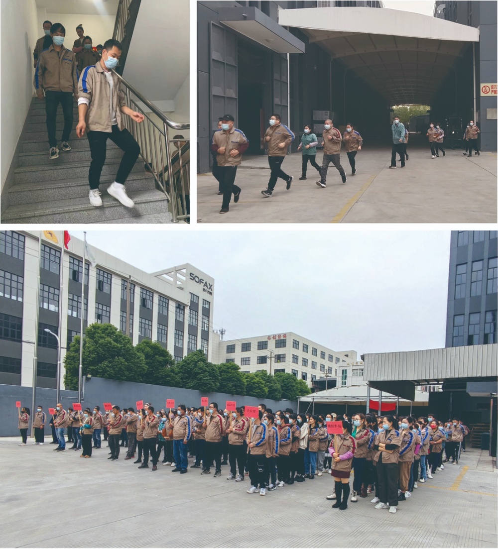 一聲令下,全體員工迅速從防火通道口撤離,應(yīng)急疏散演練正式開始,各車間班組長在各車間門口進(jìn)行引導(dǎo)員工迅速離開車間,員工用濕毛巾之類物品捂住口鼻,彎腰低姿快速有序地沿防火安全疏散通道向外跑,各部門負(fù)責(zé)人將員工引導(dǎo)至空曠安全地帶,各班組長在確保車間內(nèi)人員全部離開后,迅速沿員工疏散方向撤離,隨即各車間主任清點(diǎn)人數(shù),并層層向上匯報(bào)。