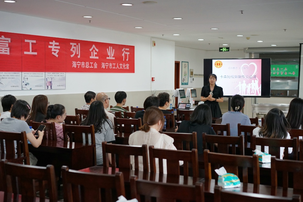 短視頻拍攝制作已成為當(dāng)前主流趨勢,日常工作和生活都離不開它。為了增強(qiáng)員工綜合技能,激發(fā)和培養(yǎng)員工興趣喜好,豐富員工文化生活,更好地適應(yīng)新時(shí)期社會(huì)發(fā)展需求,7月27日下午,我集團(tuán)舉辦手機(jī)短視頻制作培訓(xùn)班,邀請海寧市工人文化宮沈愷老師現(xiàn)場授課,20多位視頻制作愛好者參加。