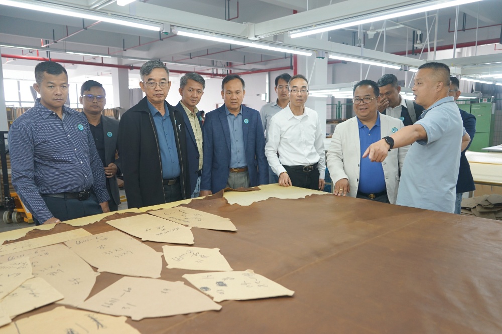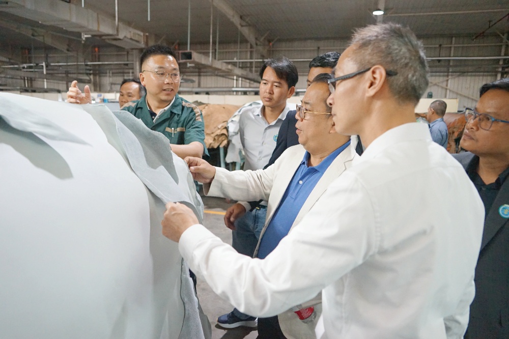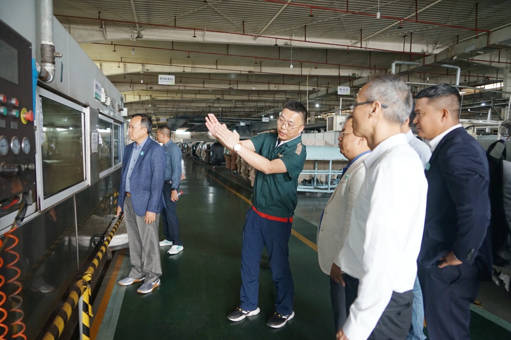 隨后,訪問團一行到斜橋工廠區(qū)進行參觀訪問。在漢林沙發(fā)有限公司,總經(jīng)理朱建林帶大家參觀了沙發(fā)制造車間和成品車間;在制革事業(yè)部,副總經(jīng)理謝柏煒帶領大家參觀了皮革制造車間。