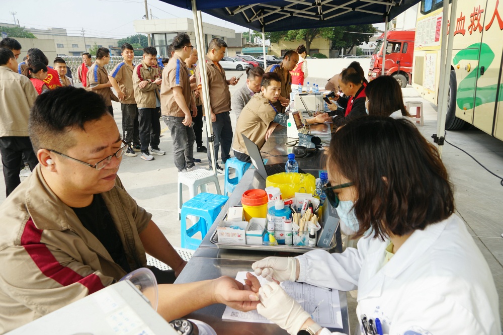 當(dāng)天上午,整個(gè)廠區(qū)洋溢著愛的暖流。只見大家在采血車前有序填寫獻(xiàn)血登記表、測量血壓、征詢體檢、初篩采樣。隨后合格者上車獻(xiàn)血,奉獻(xiàn)愛心。